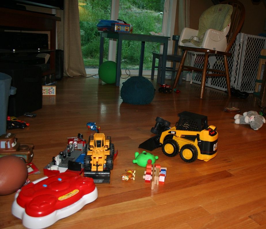 The opening of the presents went pretty smoothly until I realized that Casey's tendency to get physical over the ownership of toys extends beyond his brother. Here's Casey inspecting his new truck with Pete: